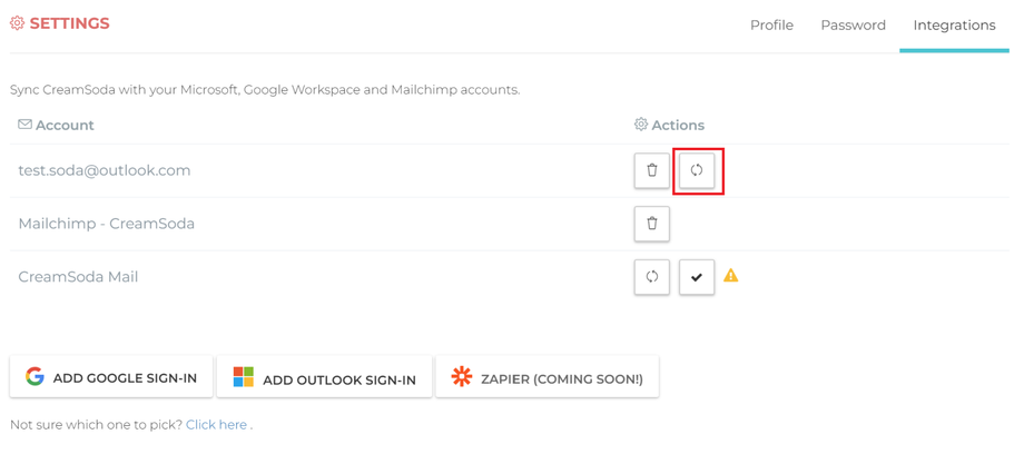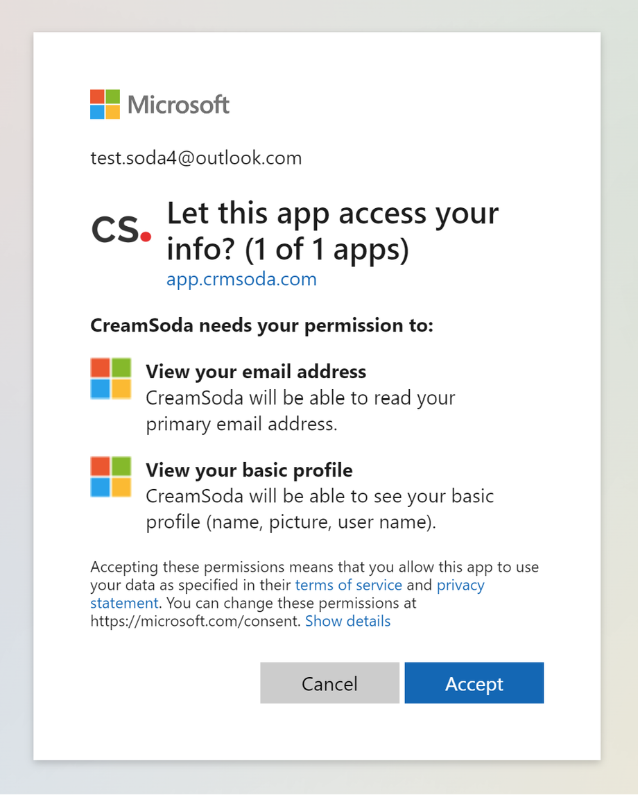 And that's it! Your Microsoft or Google account is now synced with CreamSoda!