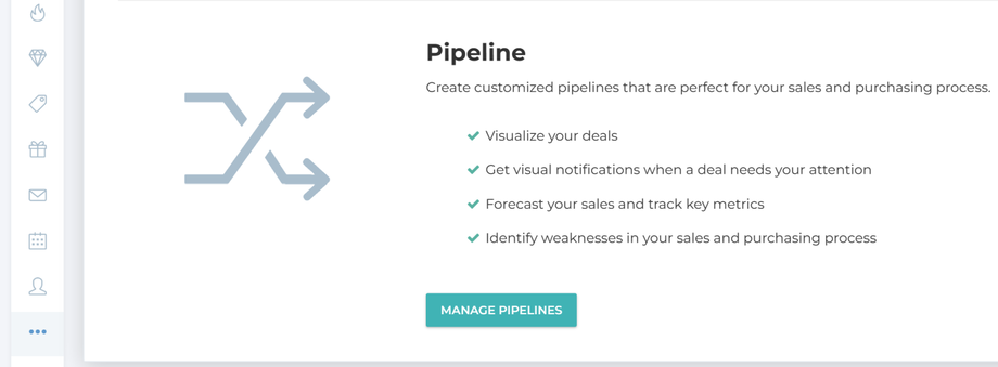 - Click on the Deal menu item from the sidebar and choose the pipeline you wish to view.