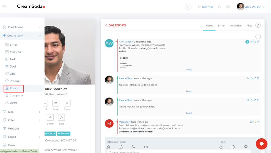 In CreamSoda, Person records are at the heart of your daily business interactions, storing essential information such as mobile numbers, alternate phone numbers, email addresses, and more. This comprehensive data capture ensures that your CRM has a lasting and detailed record of each contact for effective relationship management.