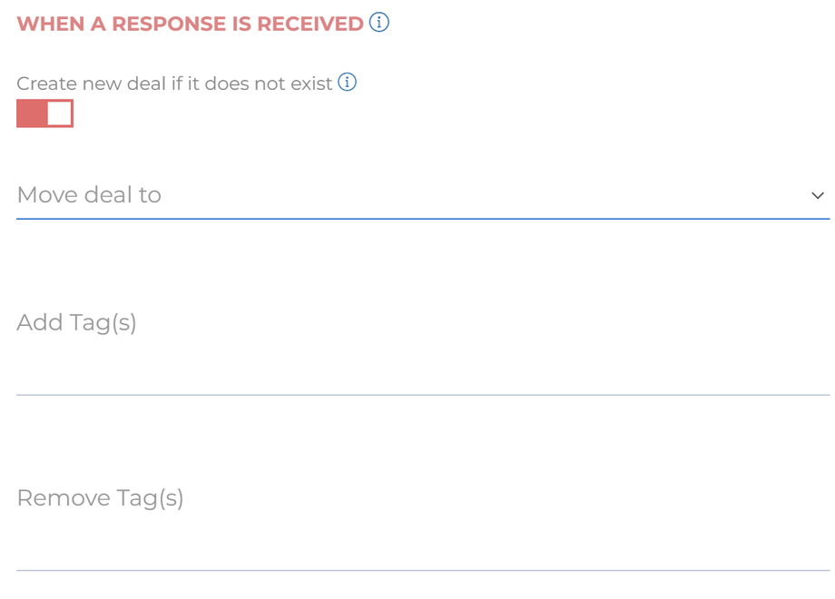 Move deal to a particular deal stage: If you want an active deal to progress through your sales process when a response is received, you can specify a particular pipeline and deal stage for CreamSoda to move it to automatically.