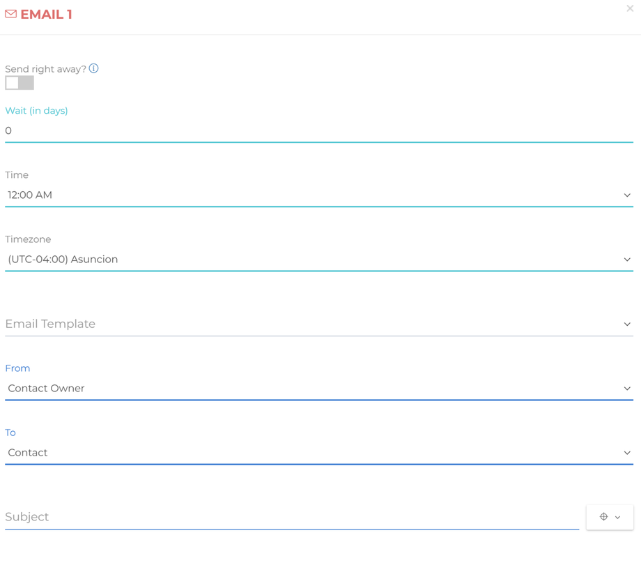Delay (Wait): Specify the number of days to wait after the last action before sending this email. You can also set the exact time and time zone for when the email should go out.